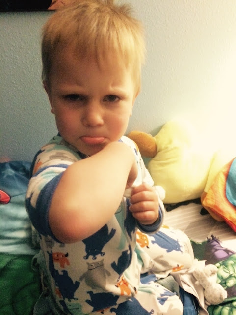 Kenz is showing off the peace sign and Cash is blasting me with his super powers.